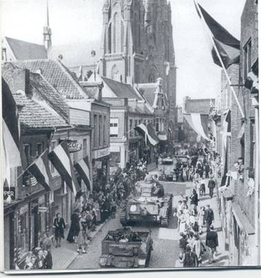 Het einde van de oorlogOp vijf mei 1945 kwam er een einde aan de oorlog. Geallieerde soldaten reden met hun tanks door de straten van Nederland.